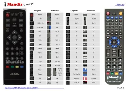 Aquest comandament a distància substitueix completament el teu RT0140 en totes les seves funcions. No és un comandament universal, sinó una còpia exacta del teu original.