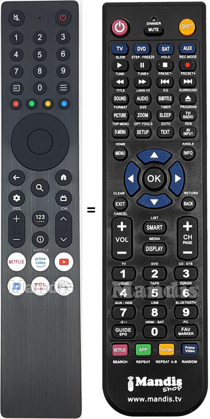 A continuació, us mostrarem la correspondència entre cada un dels botons del comandament original i el botó que realitza la mateixa funció en el comandament de substitució. En alguns casos, és possible que necessiti prémer la tecla SHIFT abans de prémer un altre botó per realitzar certes accions. Aquestes funcions addicionals sovint no s'utilitzen gaire i s'inclouen per facilitar la comprensió del comandament de substitució, o perquè el comandament original té més botons que el seu equivalent.