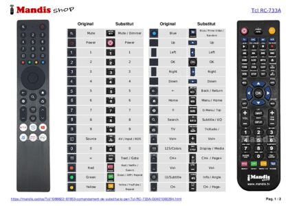 Inici > Marques > Comandaments a distància Tcl > Comandament per Tcl RC-733A > Distribució interactiva de tecles Tcl RC-733A