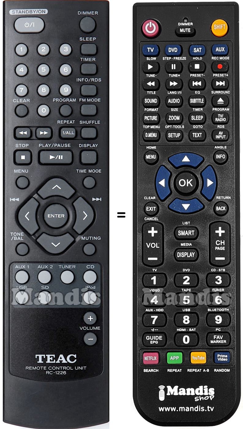 Aquest comandament a distància substitueix completament el teu RC-1226 en totes les seves funcions. No és un comandament universal, sinó una còpia exacta del teu original.