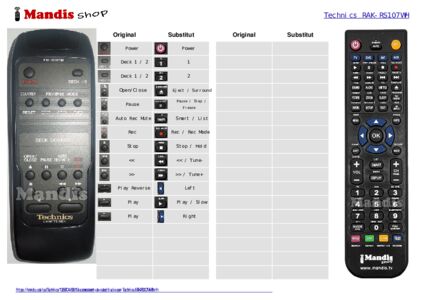 A continuació, us mostrarem la correspondència entre cada un dels botons del comandament original i el botó que realitza la mateixa funció en el comandament de substitució. En alguns casos, és possible que necessiti prémer la tecla SHIFT abans de prémer un altre botó per realitzar certes accions. Aquestes funcions addicionals sovint no s'utilitzen gaire i s'inclouen per facilitar la comprensió del comandament de substitució, o perquè el comandament original té més botons que el seu equivalent.