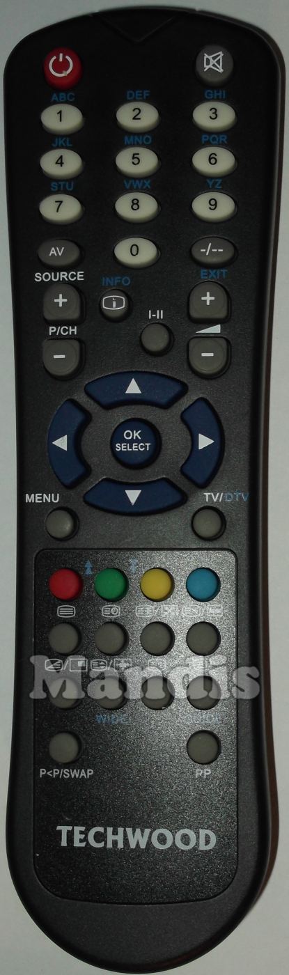 Comandament a distància original RC1055 (20351504) que serveix per televisors de la marca Techwood. Es tracta d'un model original de comandament a distància.