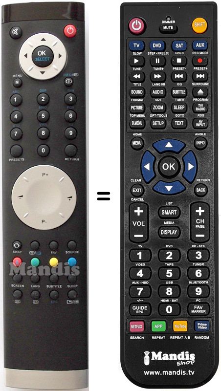 Comandament a distància que substitueix el comandament RC1800 (20453931) en totes les seves funcions.