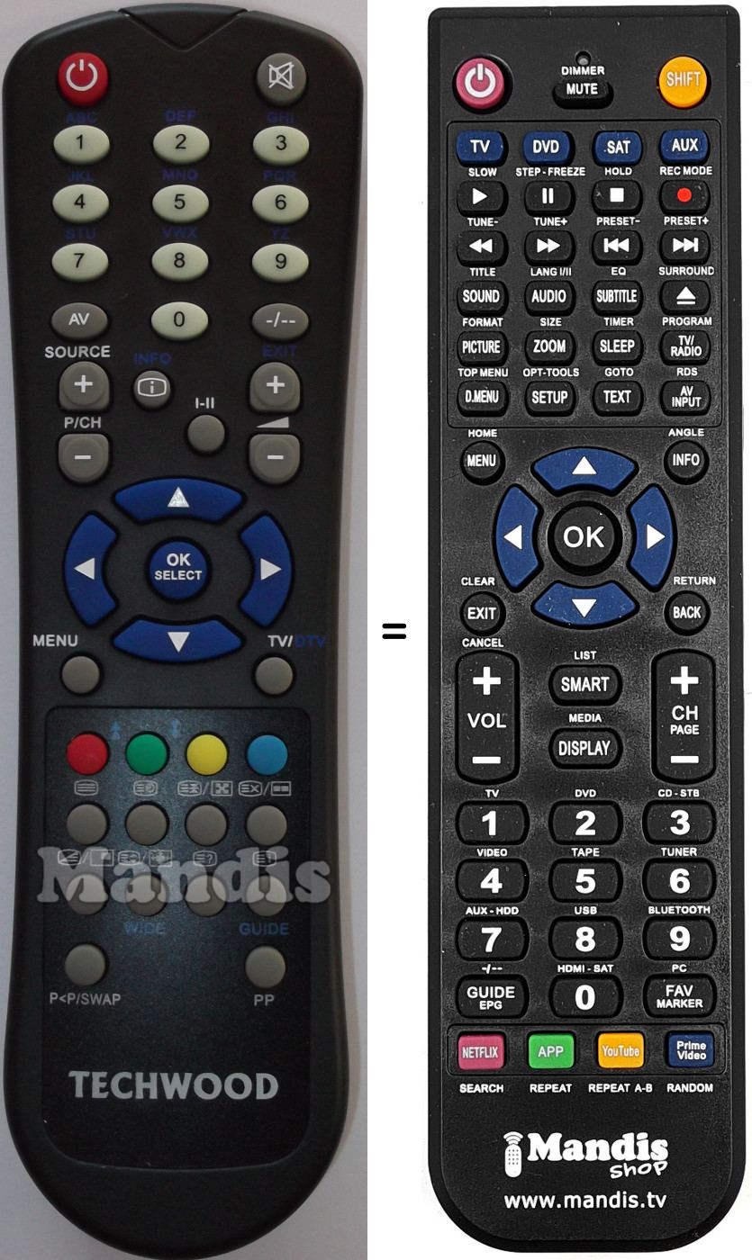 Comandament a distància que substitueix el comandament NATUSX922IIIDVBT (20463595) en totes les seves funcions.