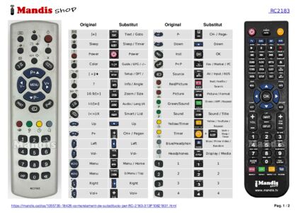 Aquest comandament a distància substitueix completament el teu RC 2183 (313P10821831) en totes les seves funcions. No és un comandament universal, sinó una còpia exacta del teu original.