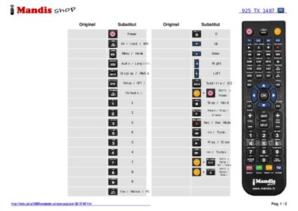 S'inclou un document amb la correspondència dels botons del nou comandament a distància per facilitar el seu ús.
