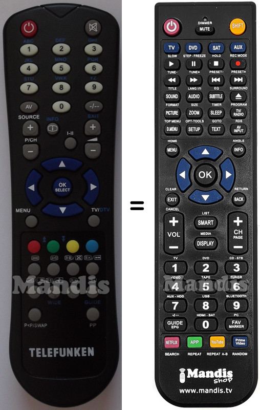 A continuació, us mostrarem la correspondència entre cada un dels botons del comandament original i el botó que realitza la mateixa funció en el comandament de substitució. En alguns casos, és possible que necessiti prémer la tecla SHIFT abans de prémer un altre botó per realitzar certes accions. Aquestes funcions addicionals sovint no s'utilitzen gaire i s'inclouen per facilitar la comprensió del comandament de substitució, o perquè el comandament original té més botons que el seu equivalent.