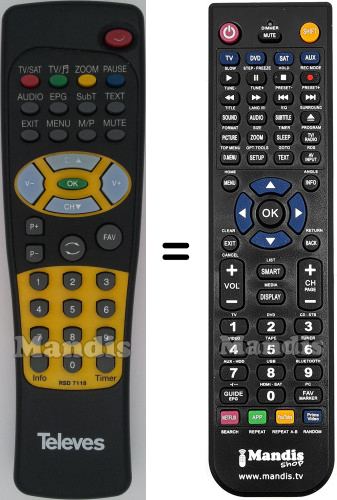 Aquest comandament a distància substitueix completament el teu RSD7118 en totes les seves funcions. No és un comandament universal, sinó una còpia exacta del teu original.
