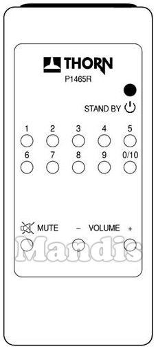 Comandament a distància original P 1465 R de la marca Thorn. Es tracta d'un model original de comandament a distància.