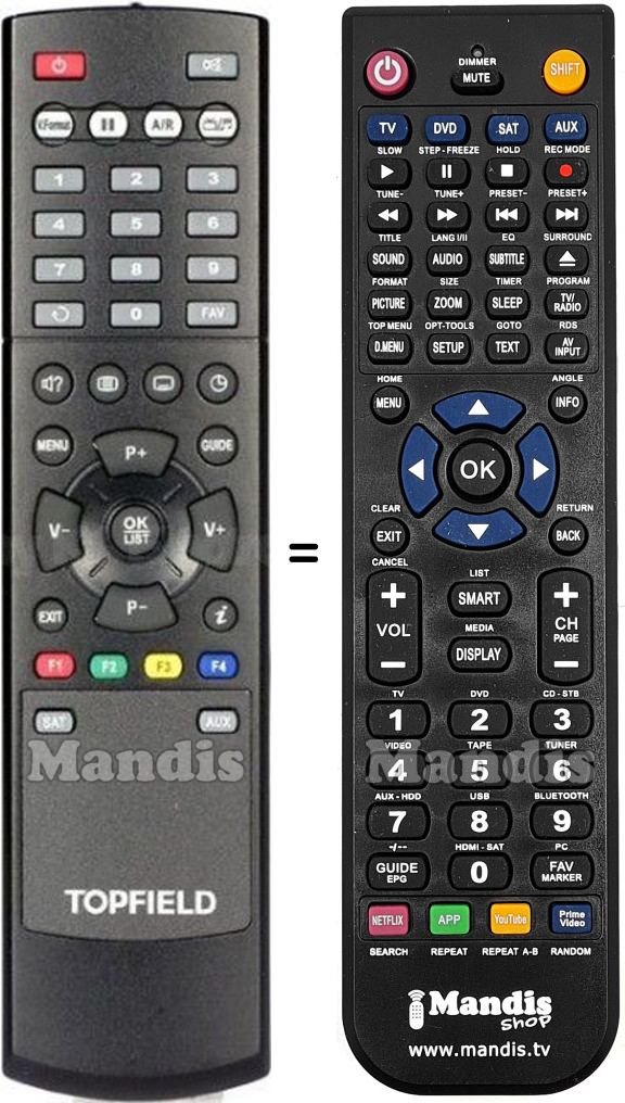 Aquest comandament a distància substitueix completament el teu TP017 en totes les seves funcions. No és un comandament universal, sinó una còpia exacta del teu original.