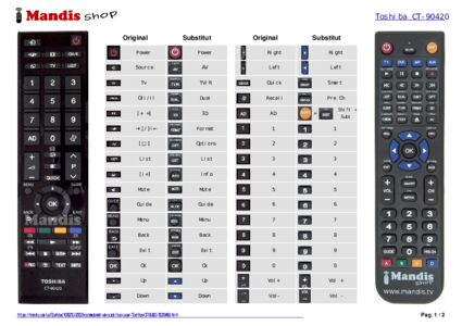 A continuació, us mostrarem la correspondència entre cada un dels botons del comandament original i el botó que realitza la mateixa funció en el comandament de substitució. En alguns casos, és possible que necessiti prémer la tecla SHIFT abans de prémer un altre botó per realitzar certes accions. Aquestes funcions addicionals sovint no s'utilitzen gaire i s'inclouen per facilitar la comprensió del comandament de substitució, o perquè el comandament original té més botons que el seu equivalent.