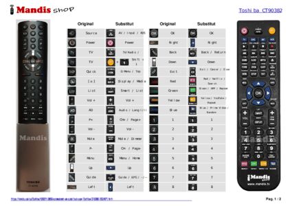 A continuació, us mostrarem la correspondència entre cada un dels botons del comandament original i el botó que realitza la mateixa funció en el comandament de substitució. En alguns casos, és possible que necessiti prémer la tecla SHIFT abans de prémer un altre botó per realitzar certes accions. Aquestes funcions addicionals sovint no s'utilitzen gaire i s'inclouen per facilitar la comprensió del comandament de substitució, o perquè el comandament original té més botons que el seu equivalent.
