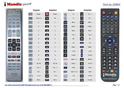 A continuació, us mostrarem la correspondència entre cada un dels botons del comandament original i el botó que realitza la mateixa funció en el comandament de substitució. En alguns casos, és possible que necessiti prémer la tecla SHIFT abans de prémer un altre botó per realitzar certes accions. Aquestes funcions addicionals sovint no s'utilitzen gaire i s'inclouen per facilitar la comprensió del comandament de substitució, o perquè el comandament original té més botons que el seu equivalent.