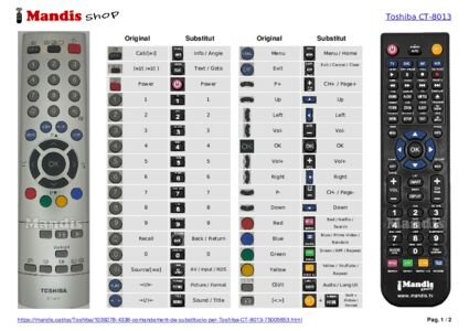A continuació, us mostrarem la correspondència entre cada un dels botons del comandament original i el botó que realitza la mateixa funció en el comandament de substitució. En alguns casos, és possible que necessiti prémer la tecla SHIFT abans de prémer un altre botó per realitzar certes accions. Aquestes funcions addicionals sovint no s'utilitzen gaire i s'inclouen per facilitar la comprensió del comandament de substitució, o perquè el comandament original té més botons que el seu equivalent.
