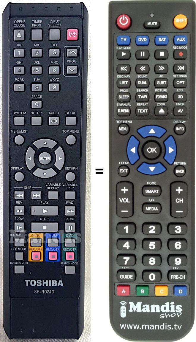 Aquest comandament a distància substitueix la majoria de les funcions del teu SE-R0240 (79103356). No és un comandament universal, sinó una còpia amb la majoria de les tecles i funcions del teu original.