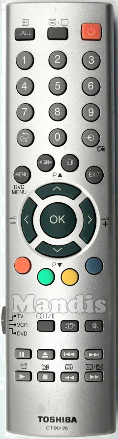 Comandament a distància original CT-90126 que serveix per televisors de la marca Toshiba. Es tracta d'un model original de comandament a distància.