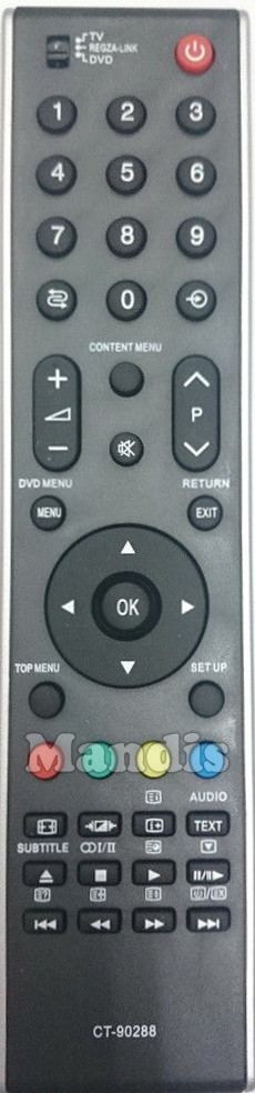 Comandament a distància original CT-90288 (75008721) que serveix per televisors de la marca Toshiba. Es tracta d'un model original de comandament a distància.