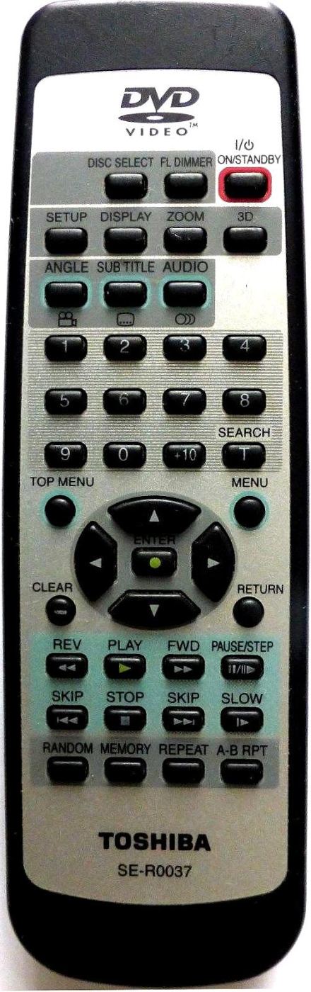 On / Standby, FL Dimmer, Disc Select, Setup, Display, Zoom, 3D, Angle, Subtitle, Audio, 1, 2, 3, 4, 5, 6, 7, 8, 9, 0, +10, Search [ T ], Top Menu, Menu, Up, Left, Enter, Right, Down, Clear, Return, << REV, Play, FWD >>, Pause / Step, I<< Skip, Stop, Skip >>I, Slow I>, Random, Memory, Repeat, A-B RPT