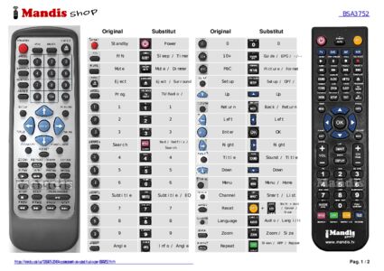 A continuació, us mostrarem la correspondència entre cada un dels botons del comandament original i el botó que realitza la mateixa funció en el comandament de substitució. En alguns casos, és possible que necessiti prémer la tecla SHIFT abans de prémer un altre botó per realitzar certes accions. Aquestes funcions addicionals sovint no s'utilitzen gaire i s'inclouen per facilitar la comprensió del comandament de substitució, o perquè el comandament original té més botons que el seu equivalent.