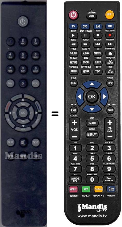 Comandament a distància que substitueix el comandament RC101 en totes les seves funcions.
