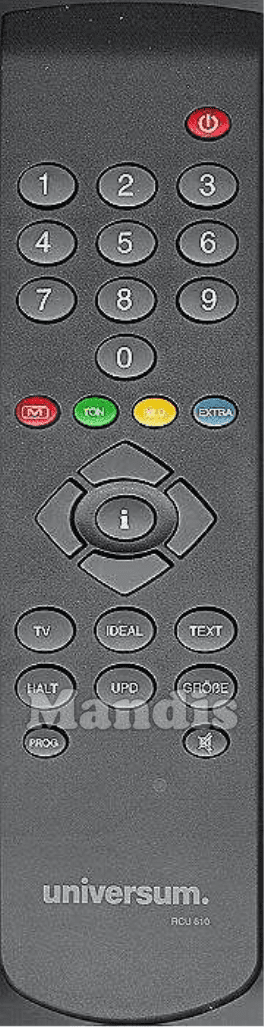 Comandament a distància original RCU610 que serveix per televisors de la marca Universum. Es tracta d'un model original de comandament a distància.
