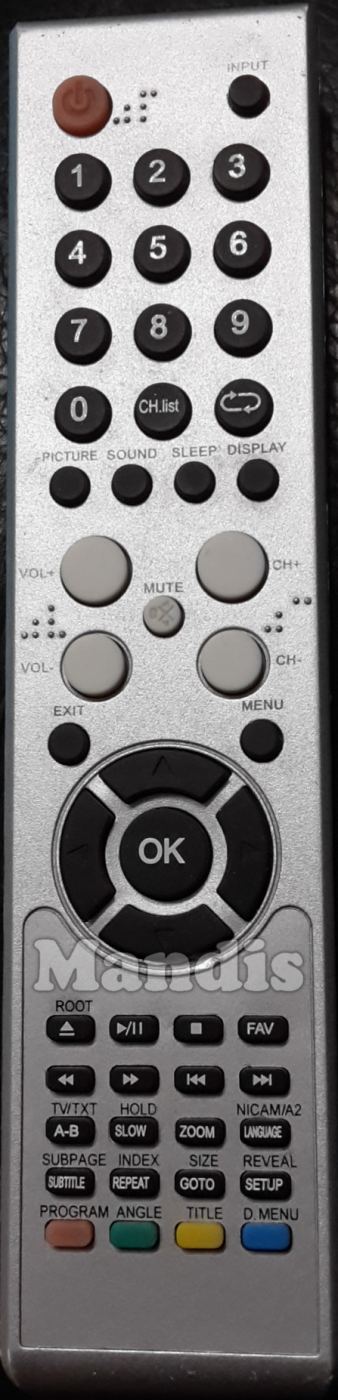 Comandament a distància original VTL26D11D que serveix per televisors de la marca VIDEOSONIC. Es tracta d'un model original de comandament a distància.