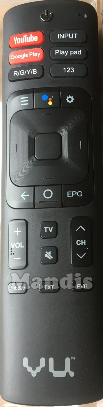 Comandament a distància original VU001 que serveix per televisors de la marca VU. Es tracta d'un model original de comandament a distància.