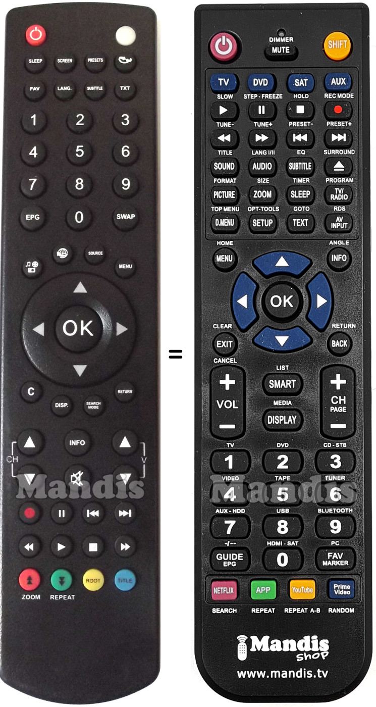 A continuació, us mostrarem la correspondència entre cada un dels botons del comandament original i el botó que realitza la mateixa funció en el comandament de substitució. En alguns casos, és possible que necessiti prémer la tecla SHIFT abans de prémer un altre botó per realitzar certes accions. Aquestes funcions addicionals sovint no s'utilitzen gaire i s'inclouen per facilitar la comprensió del comandament de substitució, o perquè el comandament original té més botons que el seu equivalent.