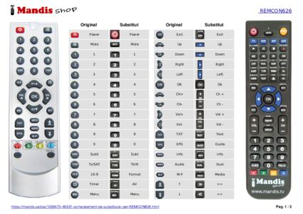 Inici > Marques > Comandaments a distància Visiosat > Comandament per Visiosat REMCON626