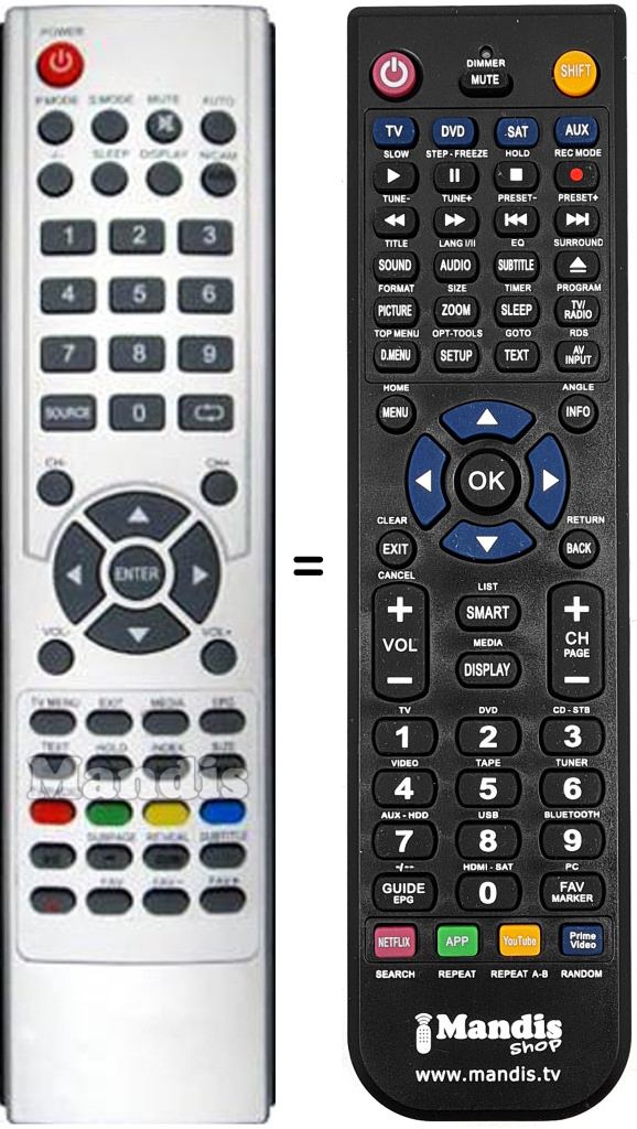 Comandament a distància que substitueix a l'original en totes les seves funcions.