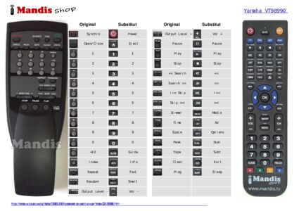 A continuació, us mostrarem la correspondència entre cada un dels botons del comandament original i el botó que realitza la mateixa funció en el comandament de substitució. En alguns casos, és possible que necessiti prémer la tecla SHIFT abans de prémer un altre botó per realitzar certes accions. Aquestes funcions addicionals sovint no s'utilitzen gaire i s'inclouen per facilitar la comprensió del comandament de substitució, o perquè el comandament original té més botons que el seu equivalent.