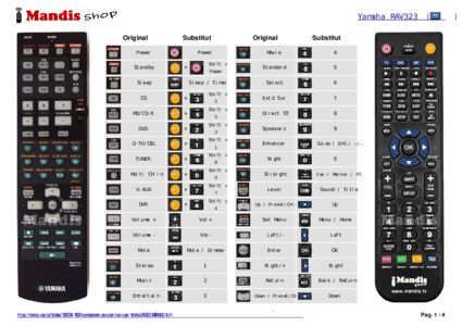 A continuació, us mostrarem la correspondència entre cada un dels botons del comandament original i el botó que realitza la mateixa funció en el comandament de substitució. En alguns casos, és possible que necessiti prémer la tecla SHIFT abans de prémer un altre botó per realitzar certes accions. Aquestes funcions addicionals sovint no s'utilitzen gaire i s'inclouen per facilitar la comprensió del comandament de substitució, o perquè el comandament original té més botons que el seu equivalent.
