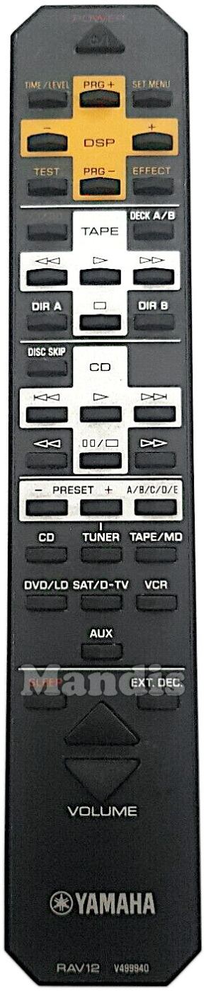 Comandament a distància original RAV12 (V49999400) que serveix per cadena hi-fi de la marca Yamaha. Es tracta d'un model original de comandament a distància.