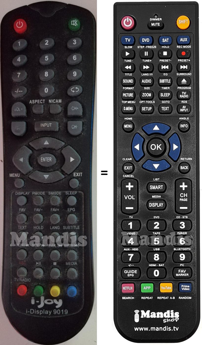 Aquest comandament a distància substitueix completament el teu I-DISPLAY9019 en totes les seves funcions. No és un comandament universal, sinó una còpia exacta del teu original.