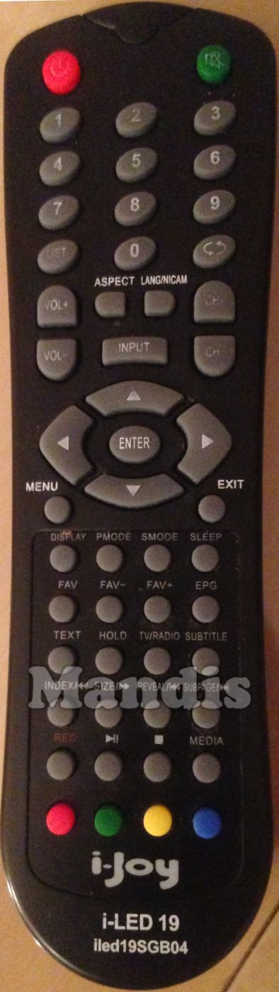 Comandament a distància original Iled19 (ILED19SGB04) que serveix per televisors de la marca i-Joy. Es tracta d'un model original de comandament a distància.