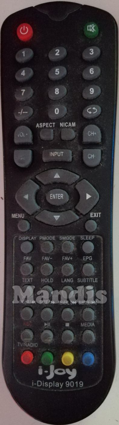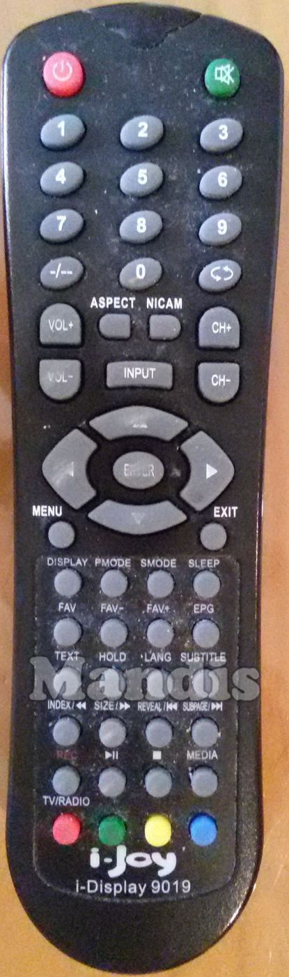 Comandament a distància original I-DISPLAY9019 que serveix per televisors de la marca i-Joy. Es tracta d'un model original de comandament a distància.