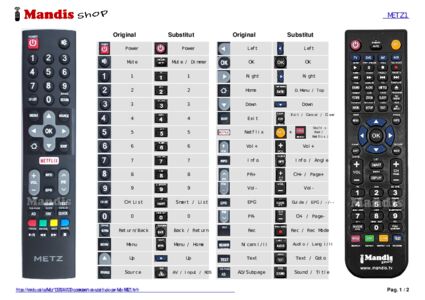 A continuació, us mostrarem la correspondència entre cada un dels botons del comandament original i el botó que realitza la mateixa funció en el comandament de substitució. En alguns casos, és possible que necessiti prémer la tecla SHIFT abans de prémer un altre botó per realitzar certes accions. Aquestes funcions addicionals sovint no s'utilitzen gaire i s'inclouen per facilitar la comprensió del comandament de substitució, o perquè el comandament original té més botons que el seu equivalent.
